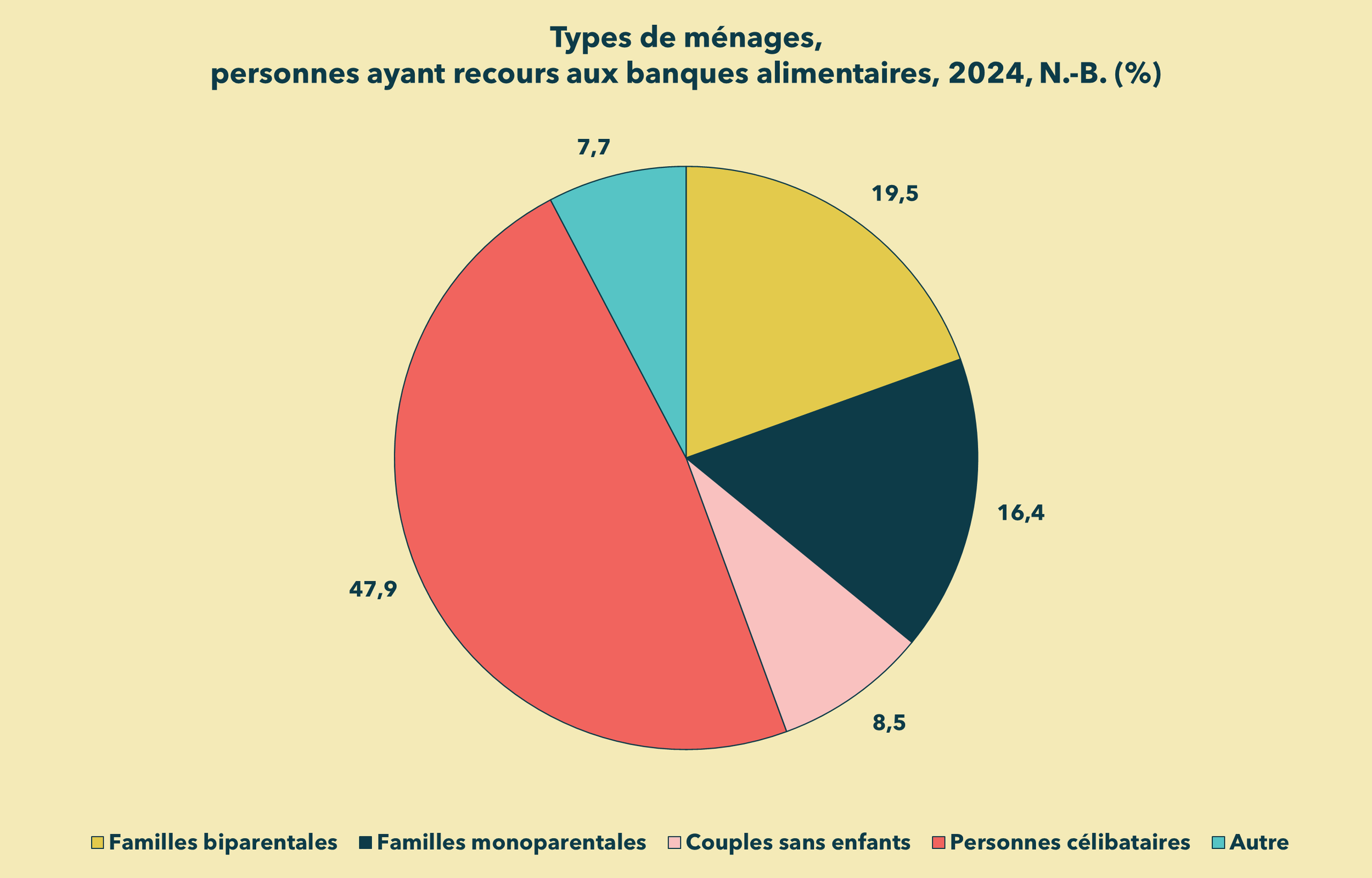 Au Canada, le type de ménage ayant recours aux banques alimentaires le plus souvent est la famille monoparentale.