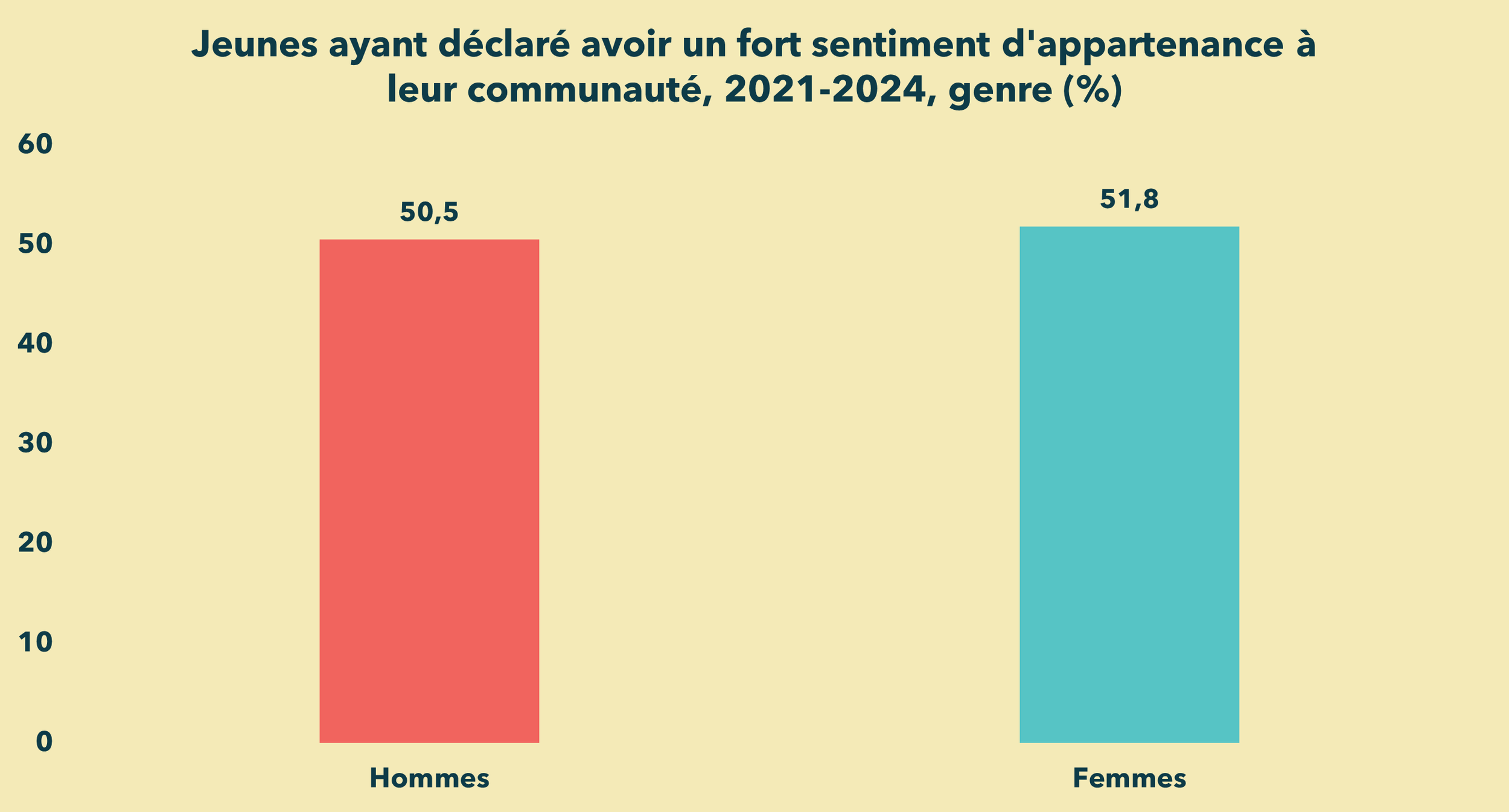 Le sentiment d'appartenance chez les jeunes du Canada atlantique correspond à celui d'ailleurs au pays, soit 51,9 %.